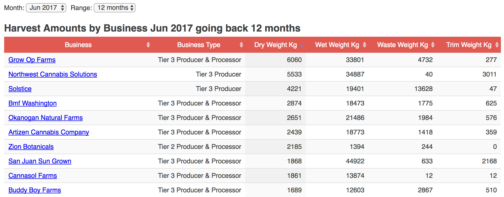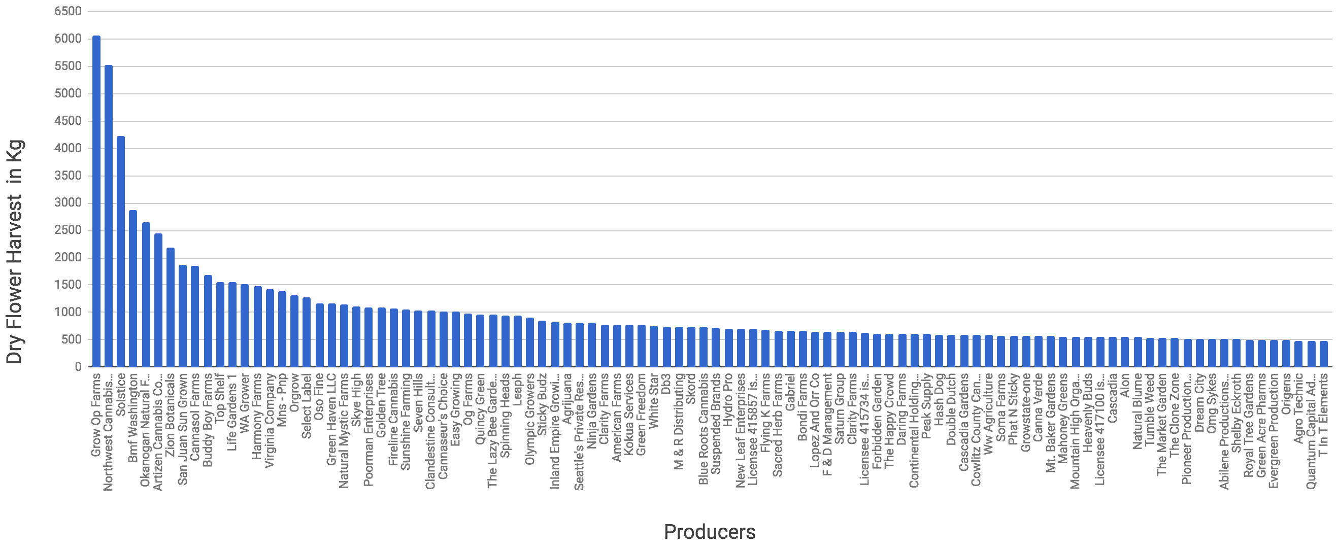 To answer this question, we used our harvest report to see what was produced in the last 12 months. We get this data as a public record from Washington's Liquor and Cannabis board (learn more).
